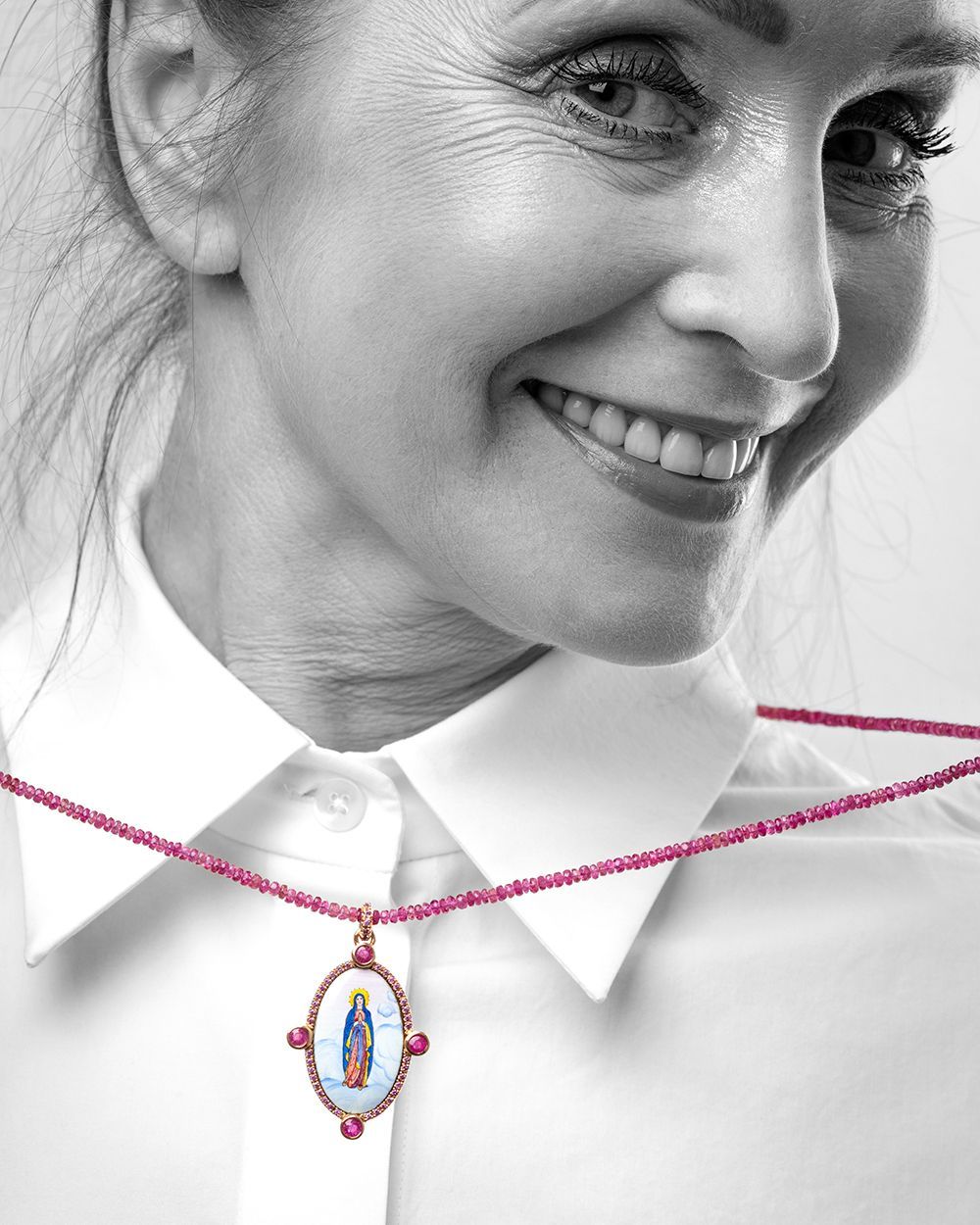 In der Himmelskind Kollektion halten wir vor allem Motive fest, die den christlichen Glauben verkörpern und Nähe schaffen sollen. Jedes Stück wird in feinster Handarbeit gefertigt, jedes Motiv in liebevoller Emaille-Malerei auf engstem Raum von Hand gemalt.